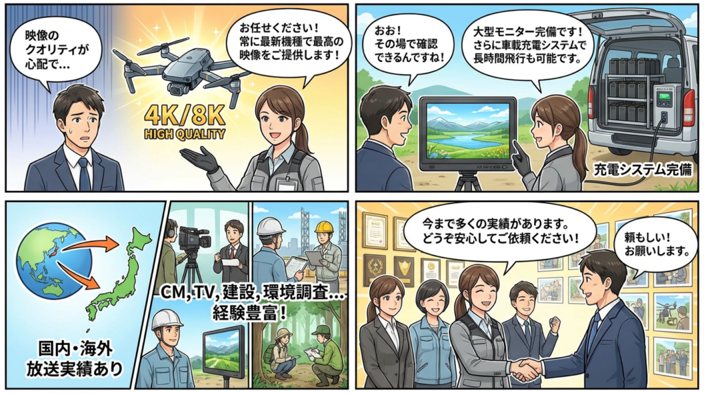 単に撮影するだけの空撮業者ではなく、映像編集技術を磨くことで「使えるカット」を生み出すことを重視し、